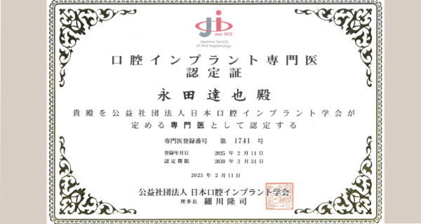 全員が日本口腔インプラント学会所属、鶴見大学での研修を修了。 最新の技術と知識を学び続けることを義務化しています。
